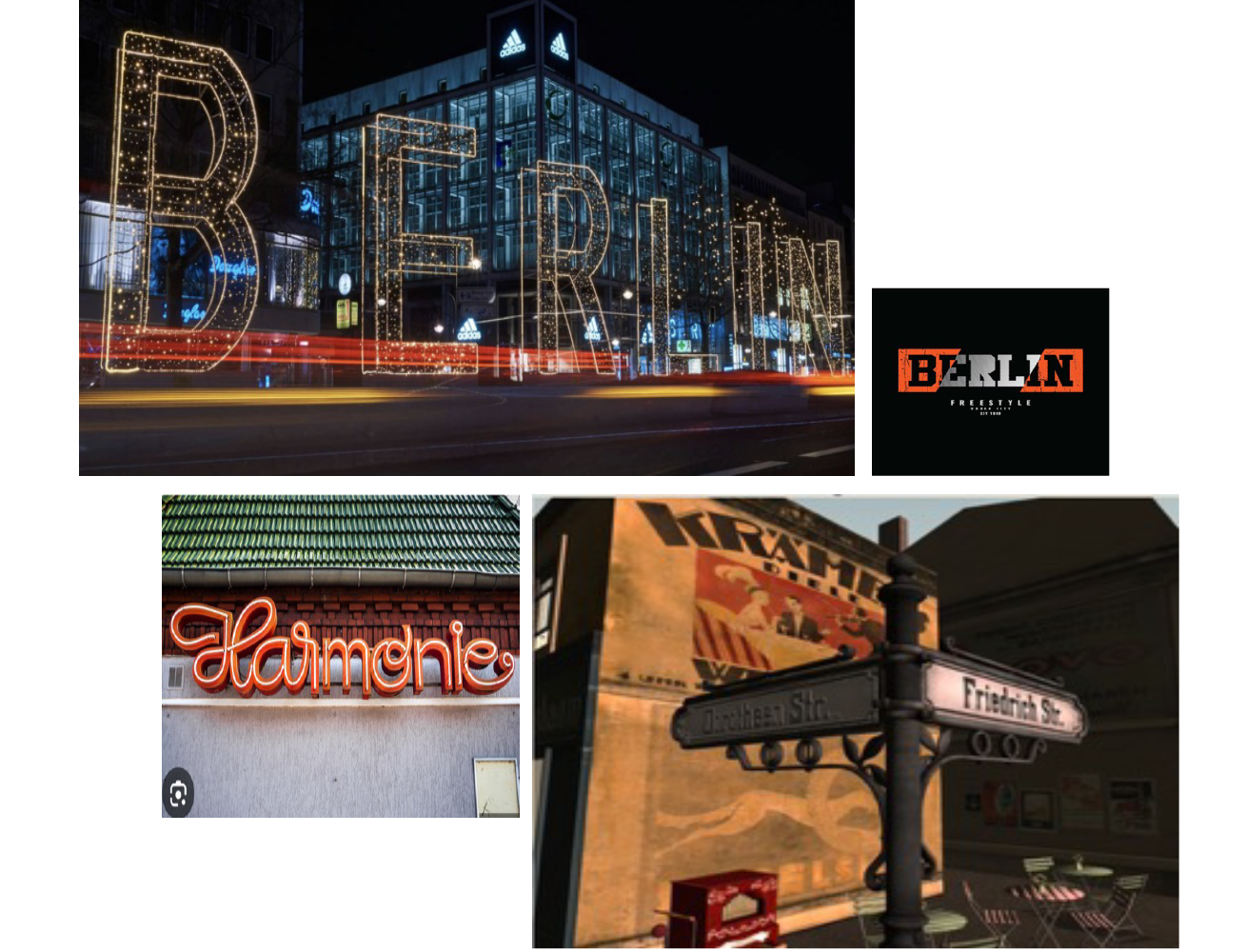 Berlin carries its history more visibly. Its visual language feels open, sometimes unfinished, often experimental. Old and new exist side by side, not always in harmony, but in conversation. Typography and signage lean toward expression, shaped as much by reinvention as by tradition.