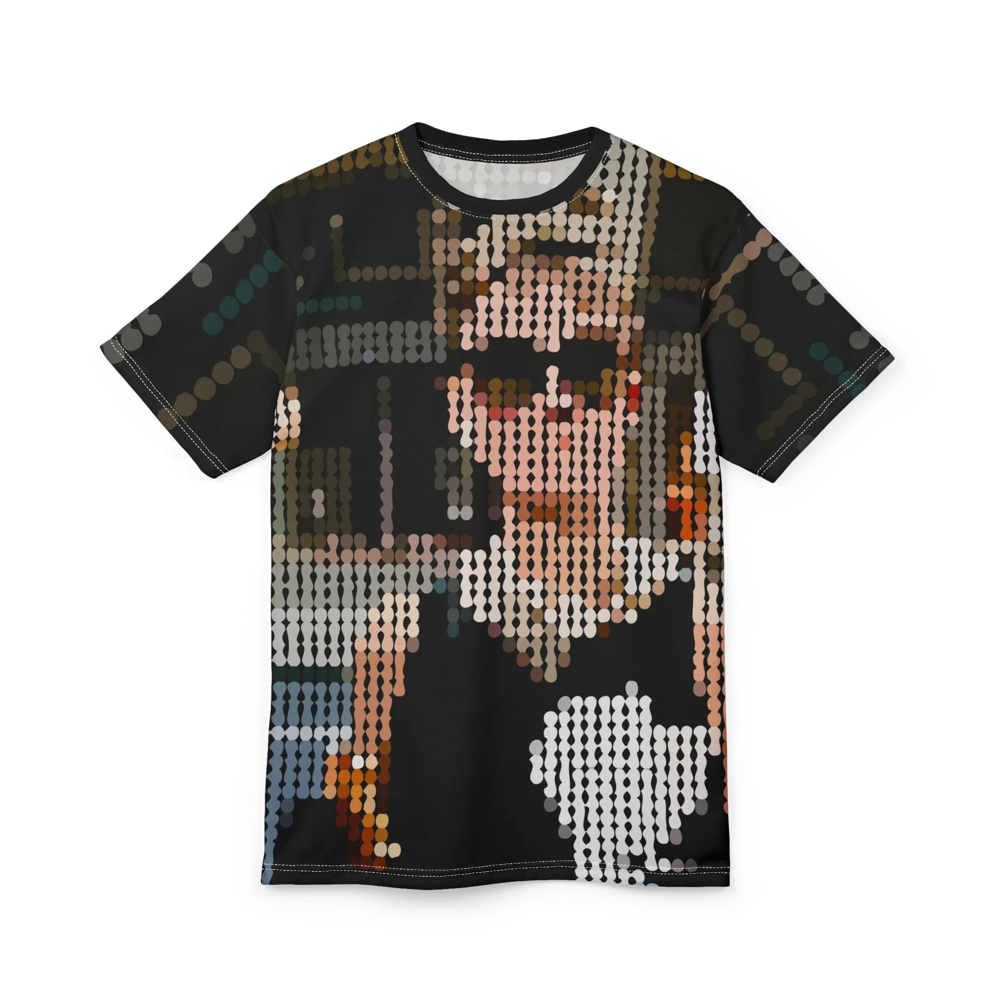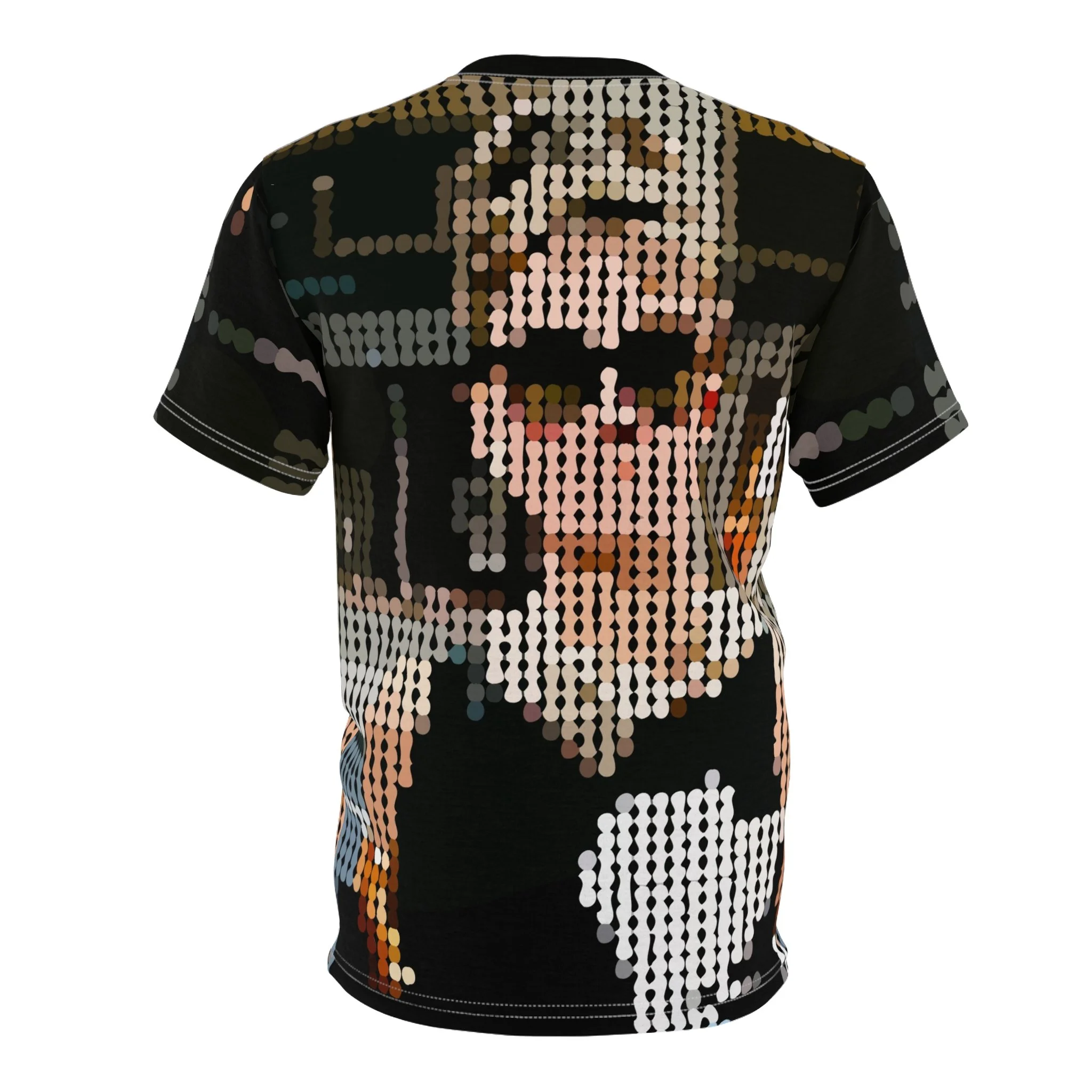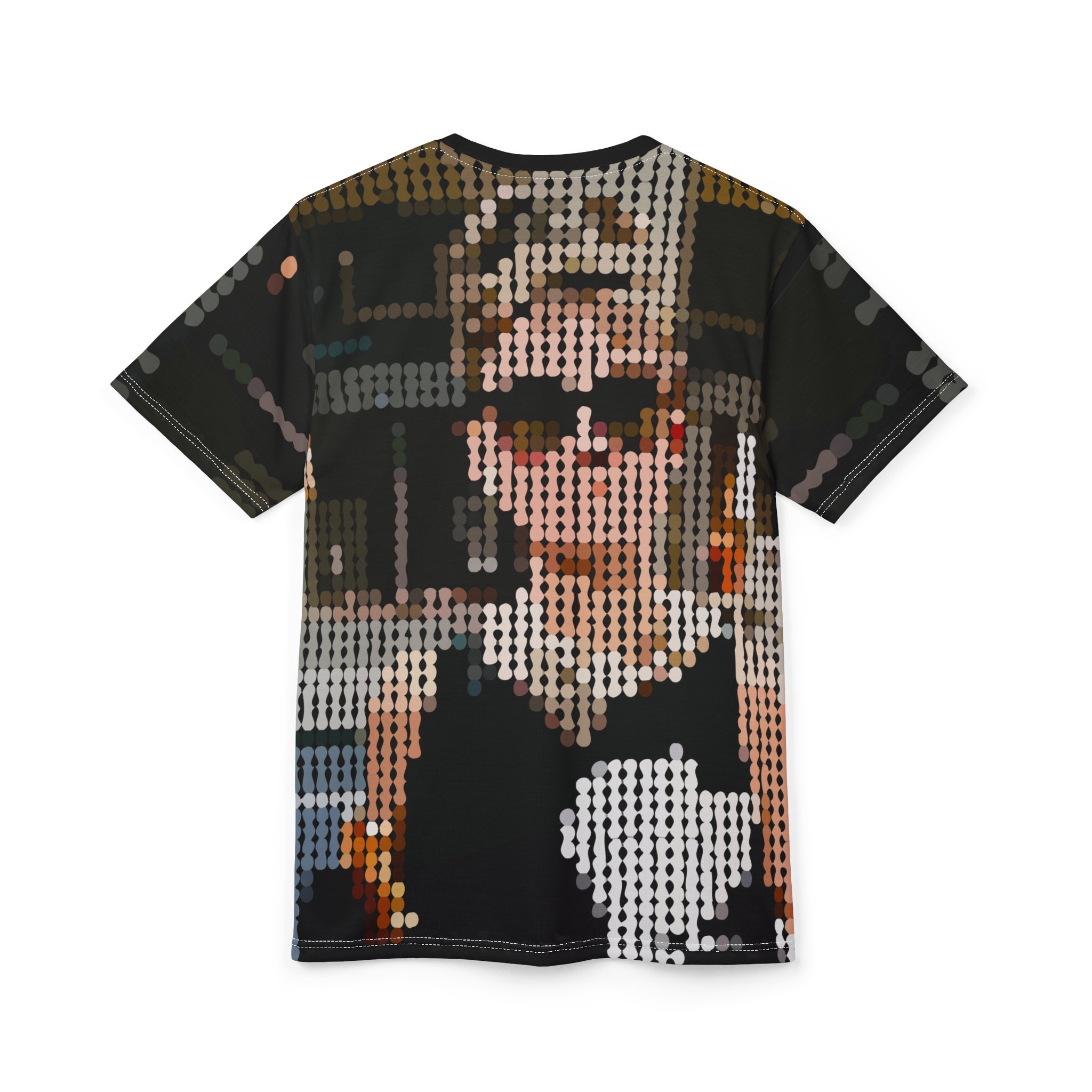 This all-over graphic tee captures Audrey’s legendary look in a striking pixelated pop-art design. With her signature sunglasses and classic black-and-white palette, the shirt transforms her timeless image into a bold, modern tribute—perfect for those who admire her beauty, strength, and humanity.